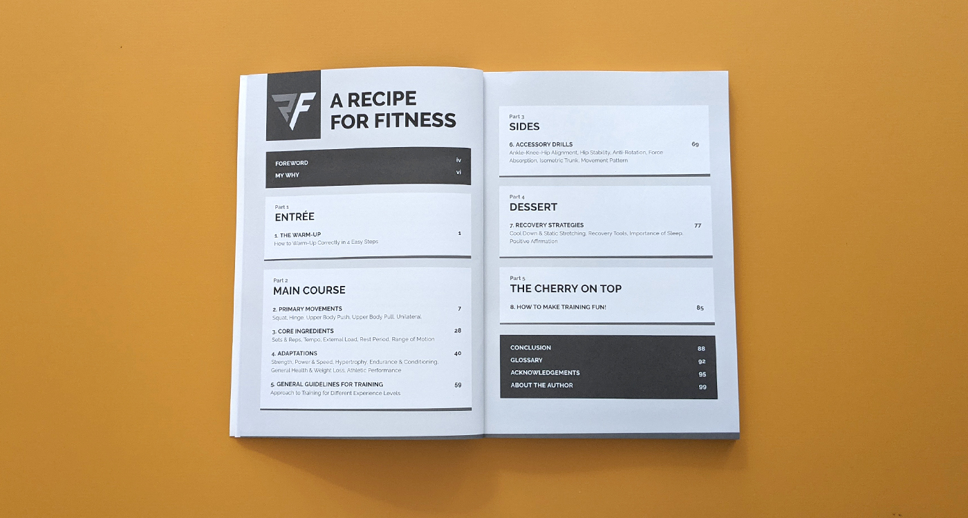 I was approached by a friend of a work colleague to create a fitness e-book that reads like a cooking recipe. Needless to say I was instantly interested in the concept.